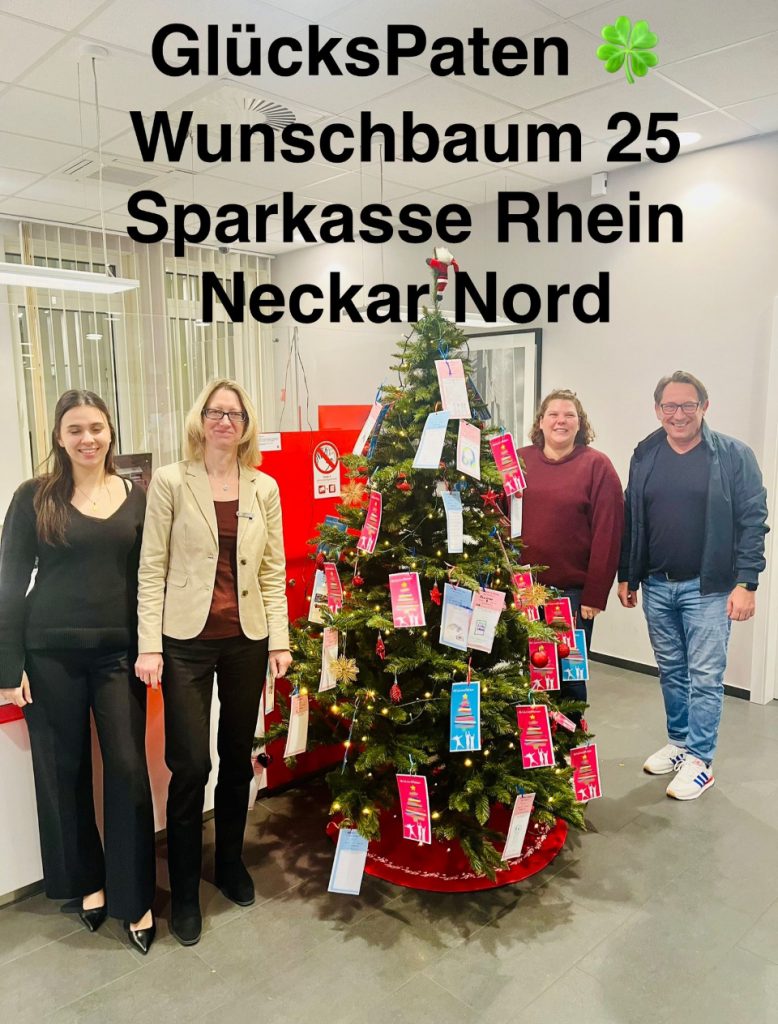Unser Wunschbaum steht ! Es ist soweit Unser Wunschbaum steht und die Wunschzettel der Kinder wurden heute morgen dran gehängt Ab sofort dürfen die Wünsche bei der Sparkasse Rhein Neckar Nord – Filiale Rheinau ausgesucht – und bis spätestens 13.12. …